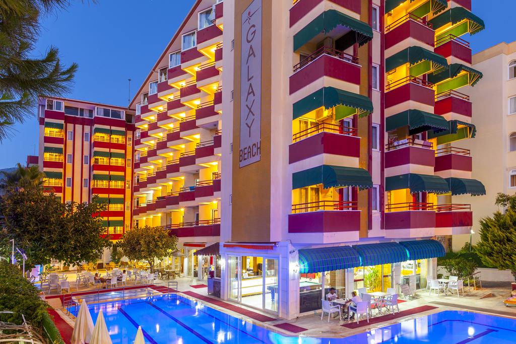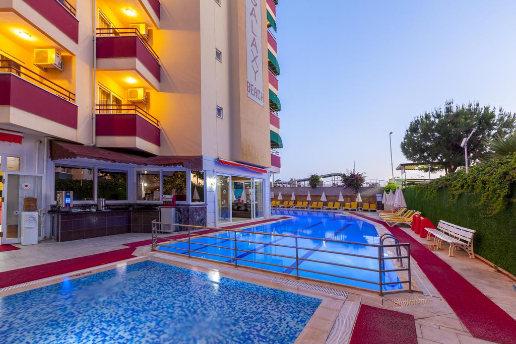 Hotelul Galaxy Beach este situat pe propria plaja privata, la 14 km de centrul orasului Alanya, la 2 km de localitatea Mahmutlar.